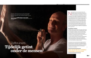 8 Spot light! ! 9 Spot light! T ij del ij kgetint onderdemensen Zelfbruiners De een valt erop terug voor een bijzondere bruiloft. Een ander wil vooral niet zichtbaar gevlekt beginnen aan de eerste dagen op het strand. Dan kunnen zelfbruiners een goed alternatief zijn om tijdelijk egaal gekleurd rond te lopen. TEKST: ARNOUD KLUITERS FOTO’S: RADJA BUREMA (VISAGIE ANN KOK), BENNO NEELEMAN, ARCHIEF TINY RIJSEMUS-BERGSTRA EN SHUTTERSTOCK N a de geboorte van haar dochtertje Yentl in 2013 breidde de vitiligo van Tiny Rijsemus-Bergstra (37) uit Scharnegoutum zich in rap tempo uit. “Van eerst een paar witte plekken op mijn lichaam, denk ik nu dat 60 procent ervan bedekt is. En nog altijd zet dit proces door.” Tiny is blij dat ze haar vitiligo een plek kan geven, de vlekken horen inmiddels bij haar leven. Zo loopt ze als doktersassistente onbekommerd in korte mouwen rond in het Tjongerschans Ziekenhuis in Heerenveen, van bedekken is echt geen sprake. Toch, kijk niet raar op als ze op een maandagochtend opeens met een egaal gekleurde huid op haar werk verschijnt. “Mijn collega’s weten dan dat ik eropuit ben geweest, bijvoorbeeld naar een festival of de Sneekweek. In kleine kring weet en ziet iedereen dat ik vitiligo heb, maar in het openbaar heb ik daar geen zin in. Dan val ik terug op een zelfbruiner die tijdelijk mijn lichaam egaal bruint.” Verschillende varianten Zelfbruiners zijn er in vele varianten. Van crèmes, gels, mousses die je direct op de huid kunt smeren of druppeltjes die je mengt met bijvoorbeeld een dagcrème. Ook kun je de huid sprayen met een spuitbus of vernevelaar. Geen zin in doe-het-zelven? Dan kun je terecht in een van de vele spray-tan-salons die Nederland telt: een medewerker sprayt je in korte tijd geheel in of je neemt een paar minuten plaats in een cabine. Voor welke variant je ook kiest, de bruine kleur ontstaat dankzij dihydroxy - aceton (DHA). Zo heet de stof in de zelfbruiner (oftewel self tanning ) en die is afkomstig uit suikerbieten of rietsuiker. Breng je DHA in contact met de huid, dan ontstaat in de uren erna een lichtere tot donkere bruintint. Ron Romeijn, docent aan de Internationale Make-Up School in Zaandam, legt uit: “Onze huid is uit verschillende lagen op- gebouwd, met aan de buitenzijde de opperhuid. De zogeheten hoorncellen hierin worden constant van binnenuit vernieuwd en intussen worden de oudere cellen naar de buitenkant geduwd waar ze verschilferen.” Neem echt de t ij d om te ontdekken wat pre tt ig is voor jouw huid ! Ron Romeijn, docent visagie/visagist